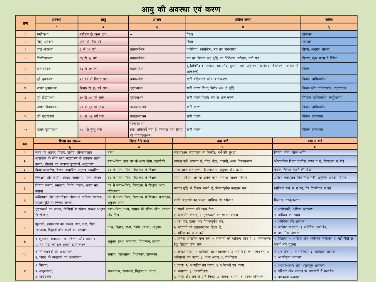 अ – अनुकरण, आ – आदर्श, इ – इष्ट (बच्चों के बीच में रहकर, बच्चे बनकर बच्चे की रुचि के अनुसार पठन-पाठन), ई – ईर्ष्या (किसी ईर्ष्या से नहीं) और बच्चों को, क – कहानी,ख – खेल,ग – गीत,घ – घर जैसा वातावरण देना ।